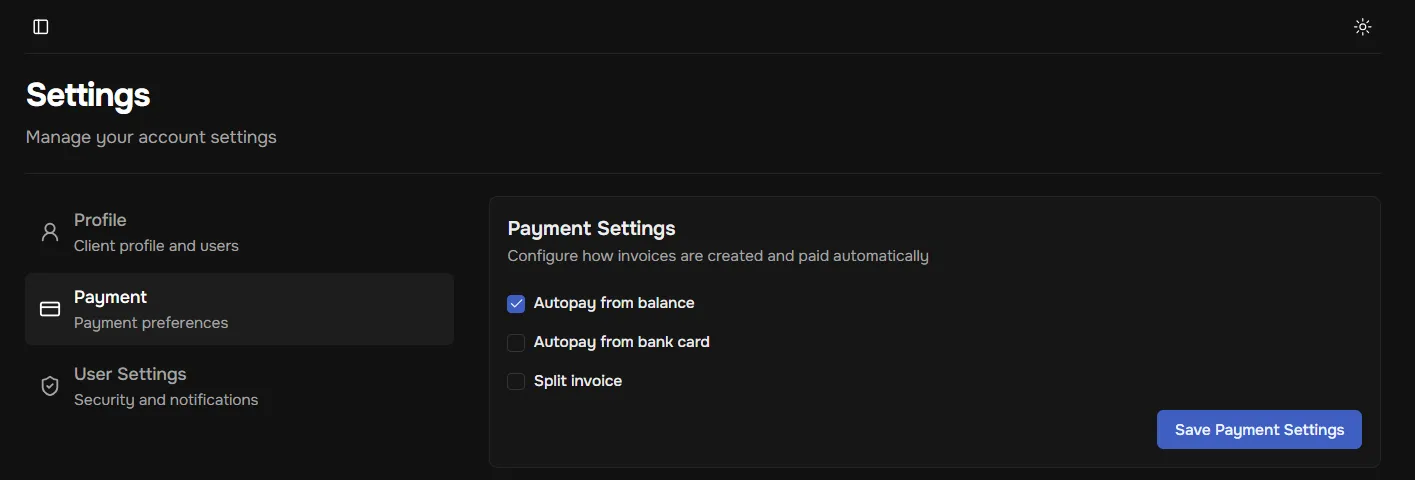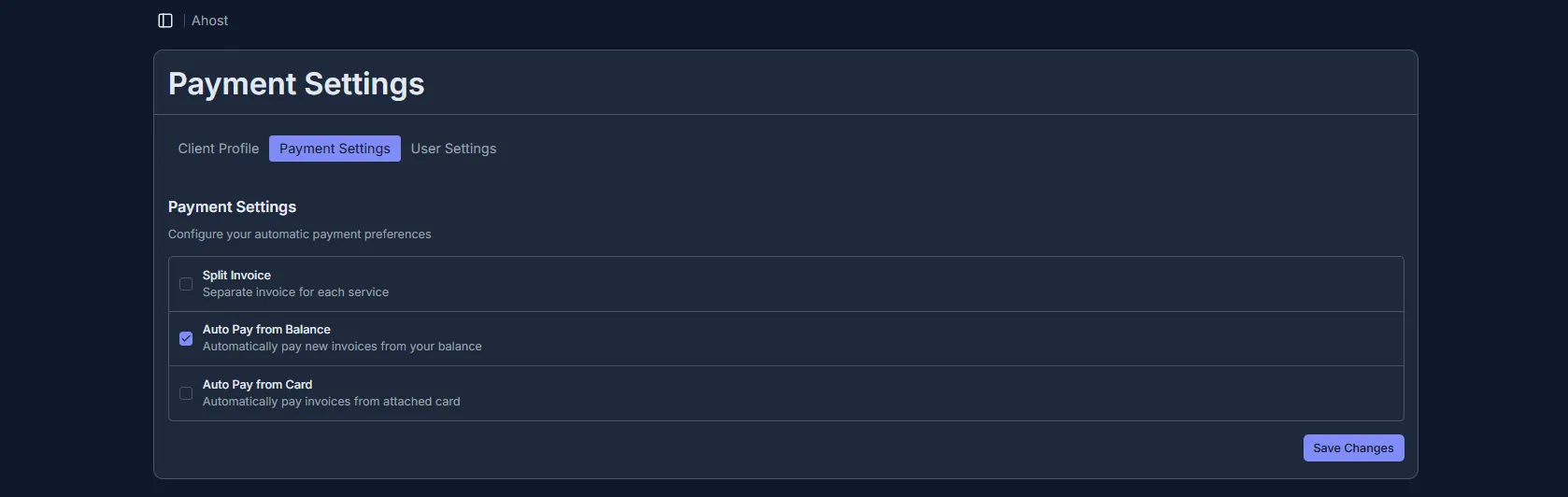 - Auto payment from balance – new invoices will be automatically paid from your available balance.