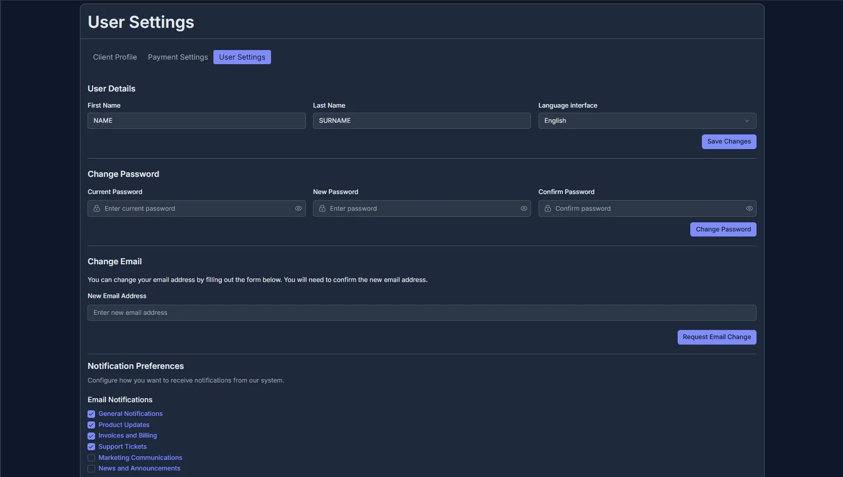 ✨ Changing profile, password, email, and preferences