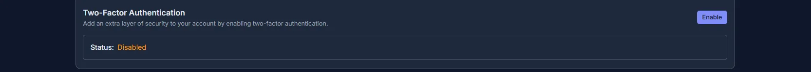 Advantage: Two-Factor Authentication adds an extra layer of protection to your account. When logging in, you will need not only your password but also a one-time code from an app (for example, Google Authenticator).