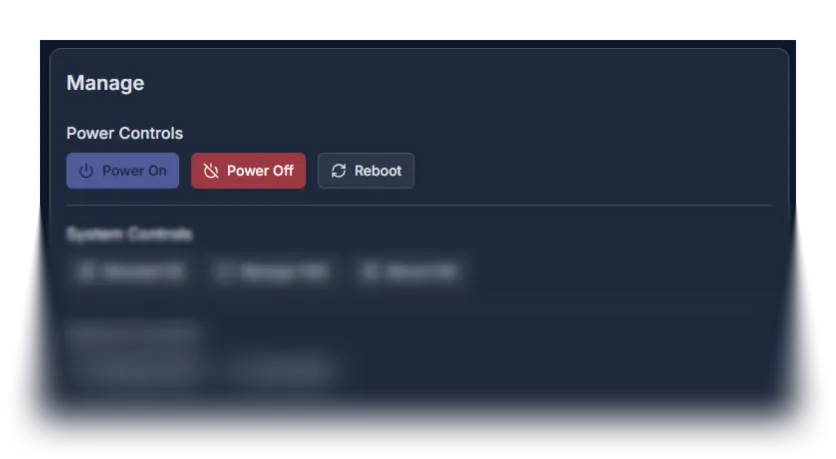 - This block is located on the right side of the “Service details” page, in the “Manage” section. It is designed for convenient control of your service’s power state. After choosing one of the three available options (Power on, Power off, Reboot), click the corresponding button and wait for the process to complete. All operations will be accompanied by notifications in the upper-right corner, as well as updates in the “Power status” section on the left side of the page.