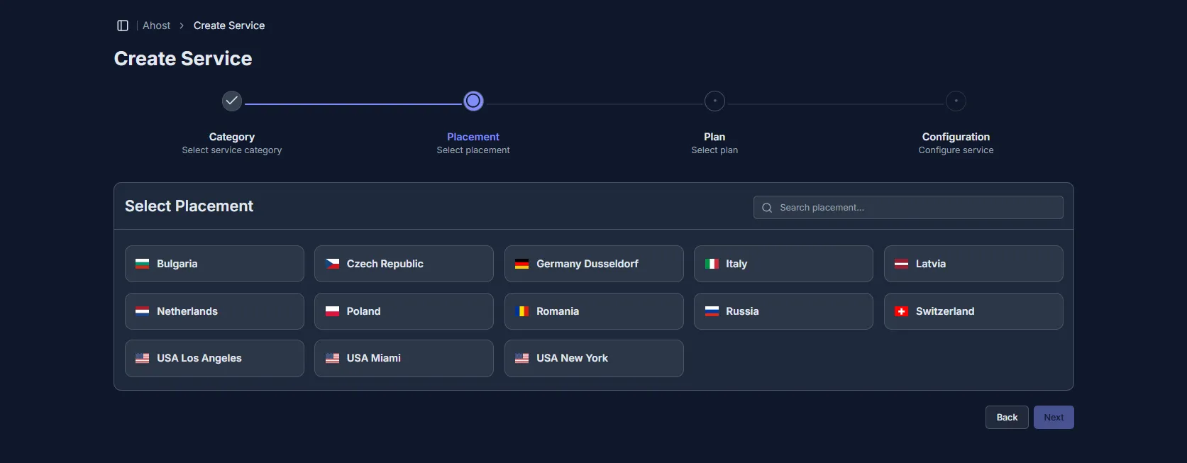 Locations for Dedicated servers – there are 13 locations available for dedicated servers, including: