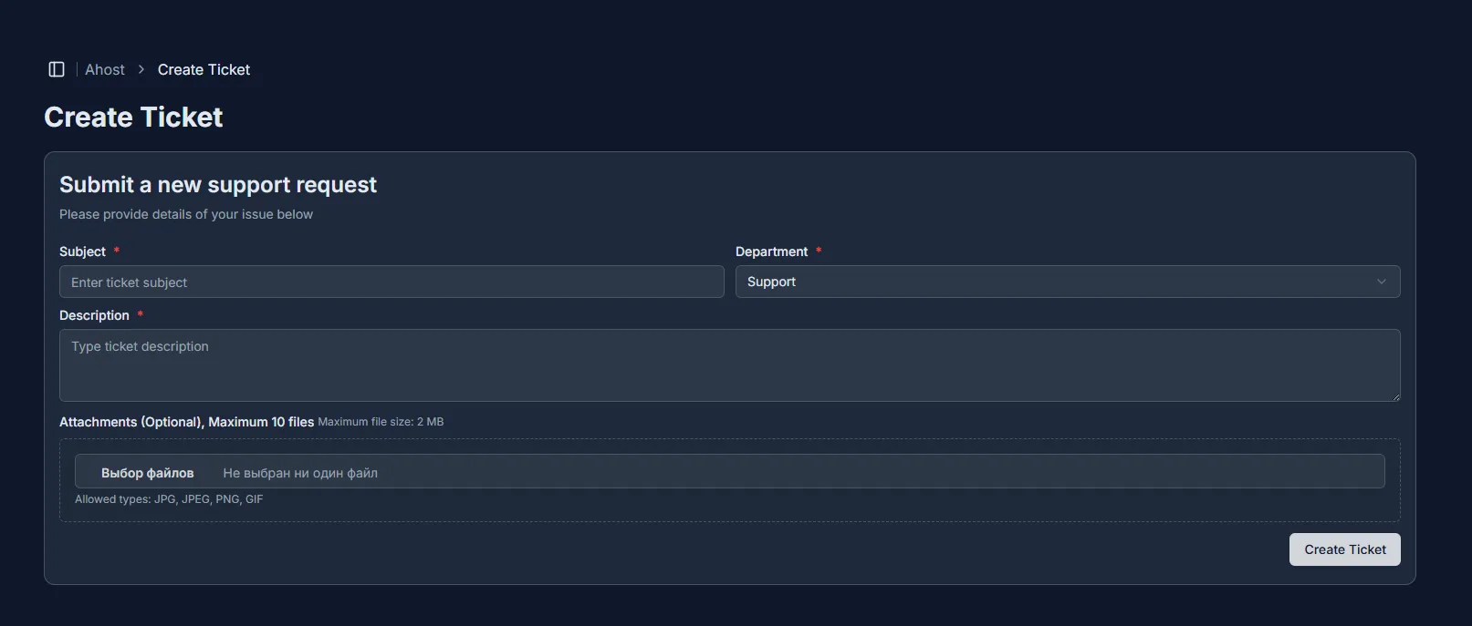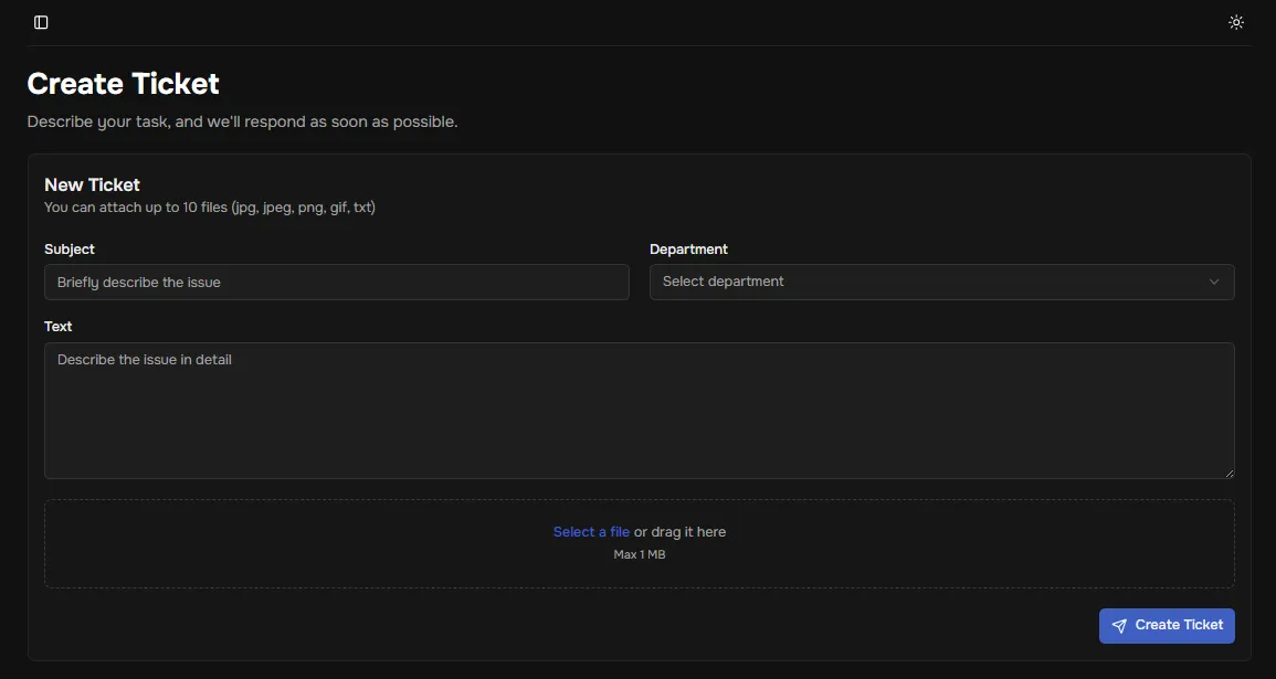 - Click the “Create ticket” button to send your request.